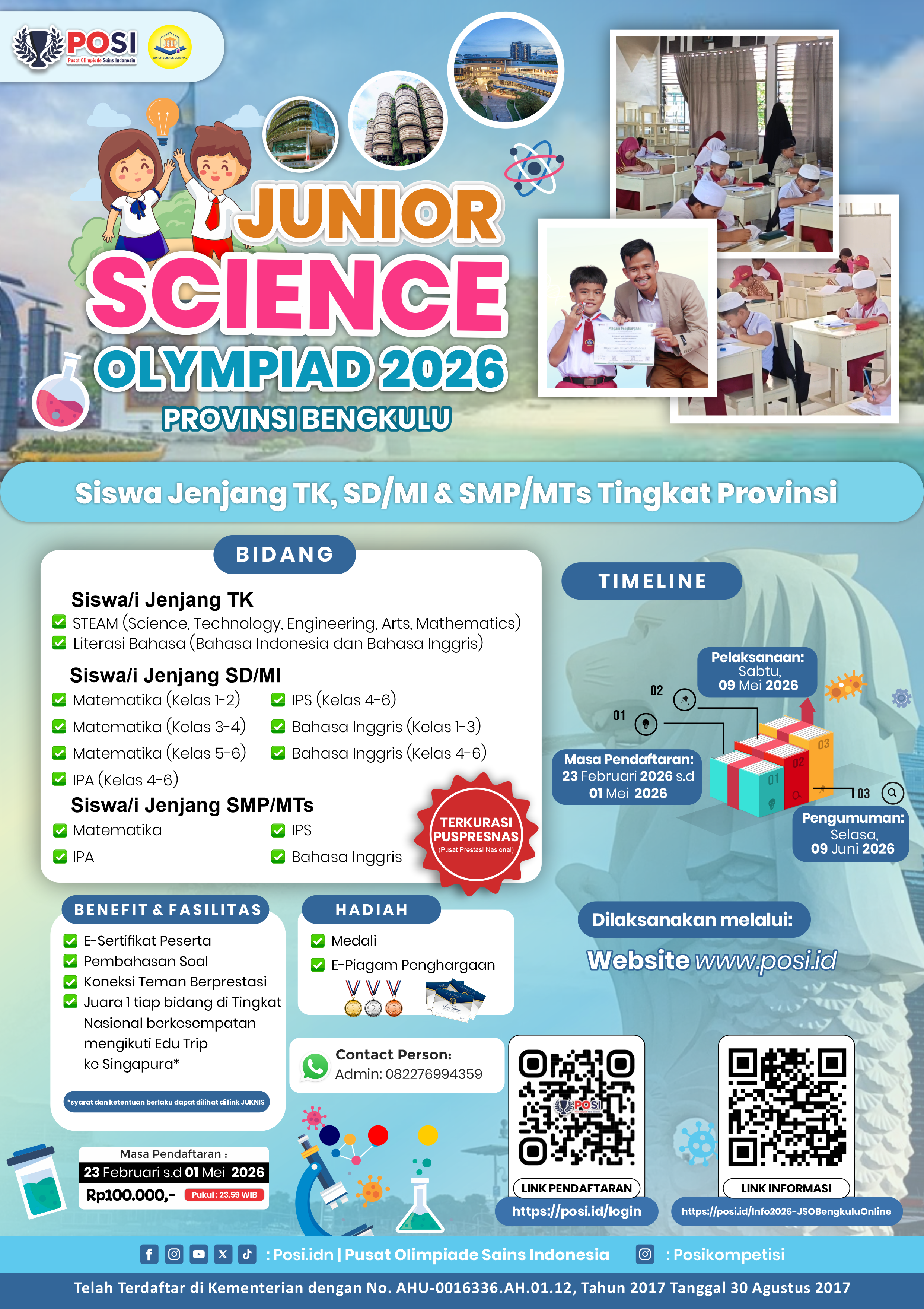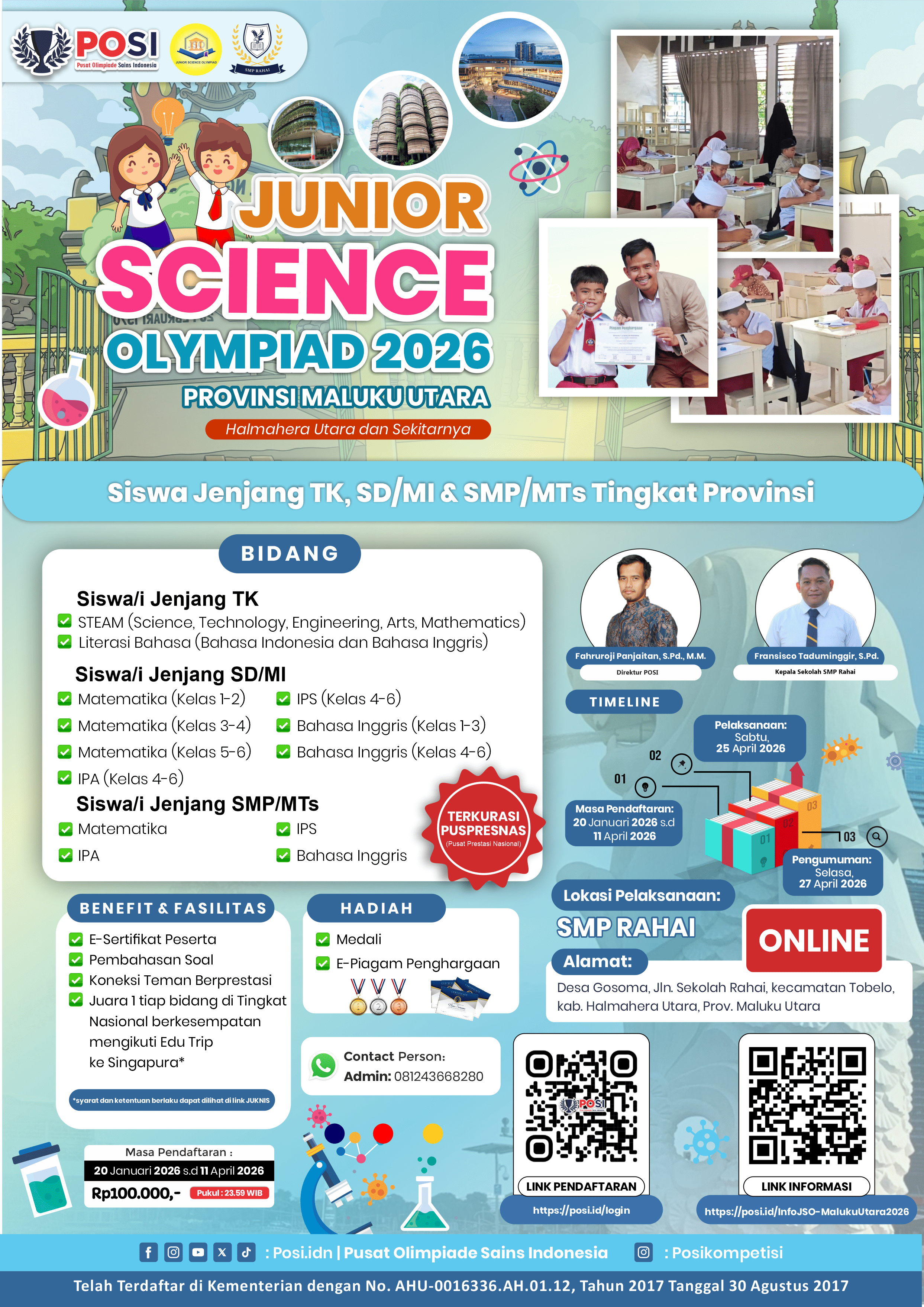 Junior Science Olympiad (JSO) Tahun 2026 Provinsi Maluku Utara (Halmahera Utara dan sekitarnya)
