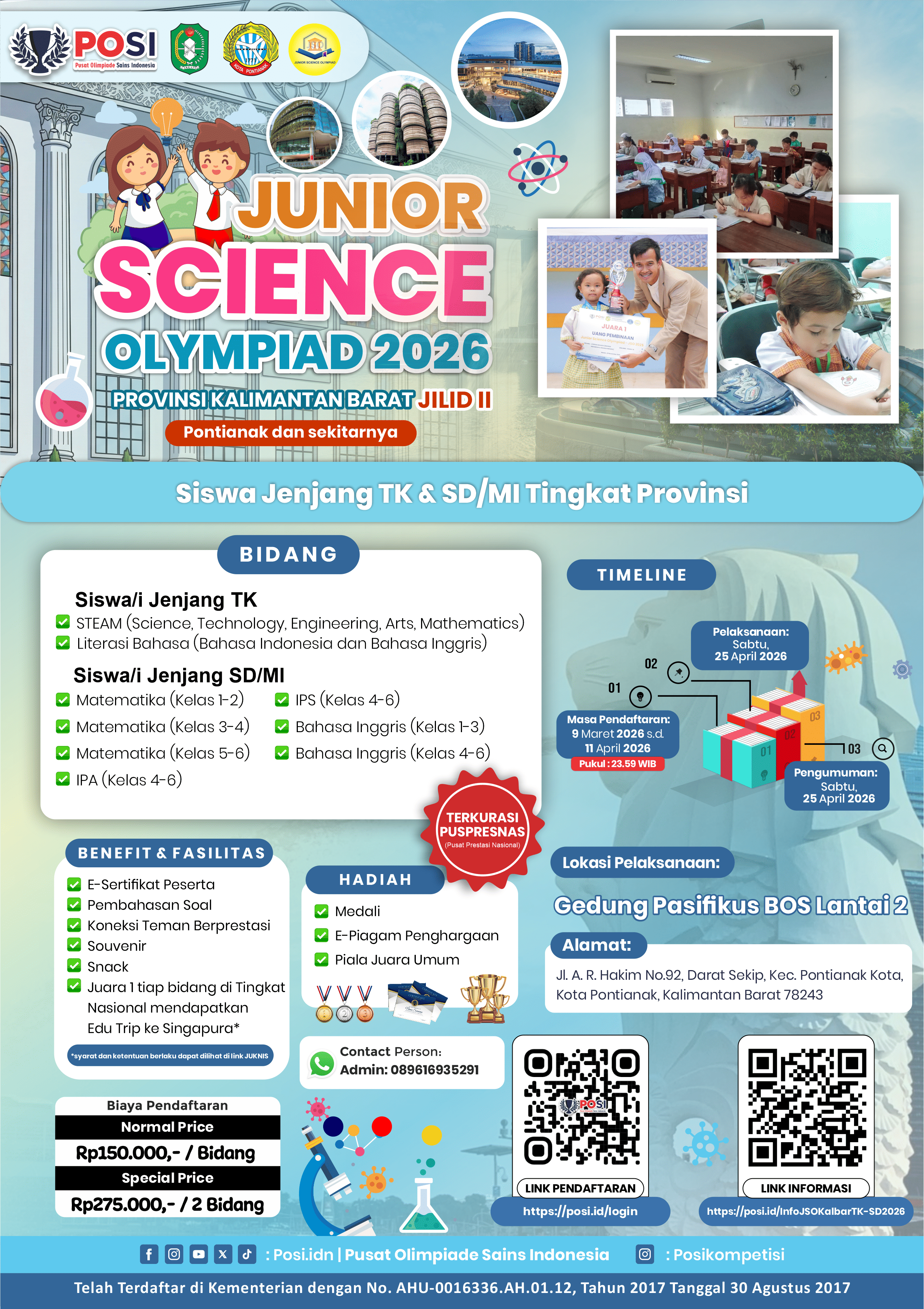 Junior Science Olympiad (JSO) 2026 Provinsi Kalimantan Barat Jilid II Jenjang TK & SD/MI